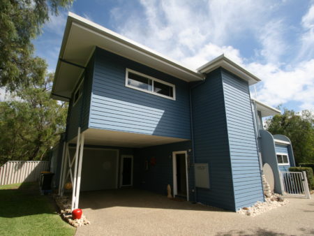 Timber framed clad externally using Primeline 'Newport' weatherboards and harditex with colorbond trimdeck profile roof.