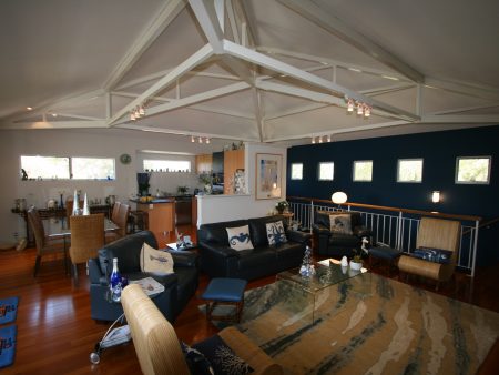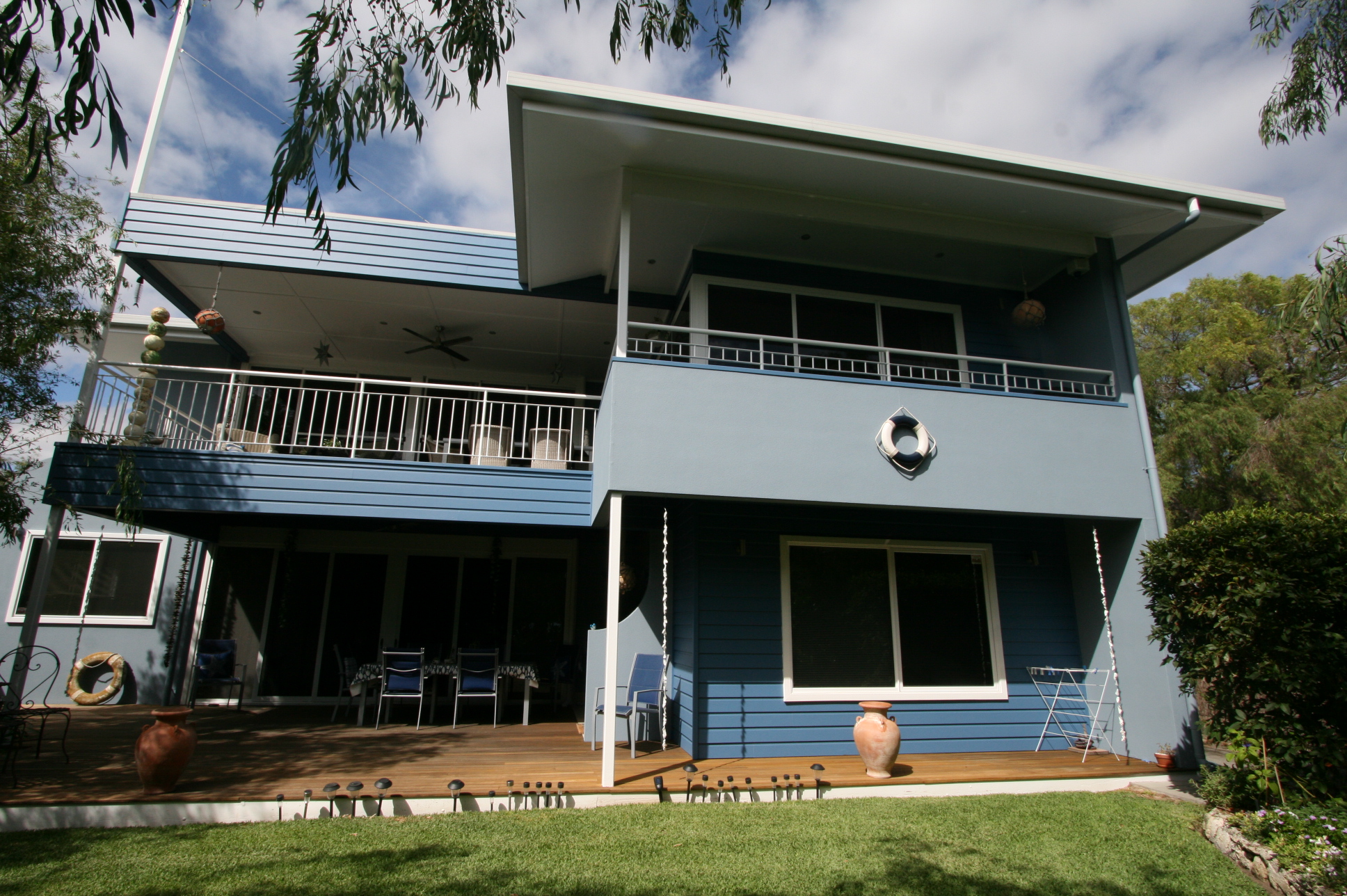 Our Client’s request was to emulate the character and charm of the original timber framed, weatherboard family beach house which they had enjoyed for a number of decades. The material choice, colour scheme and building architecture was a response to our Clients strong vision of how this beach house would be. The separation of pavillion style roof forms, use of flag poles and shapes and forms are reminiscent of boardwalk style coastal architecture.